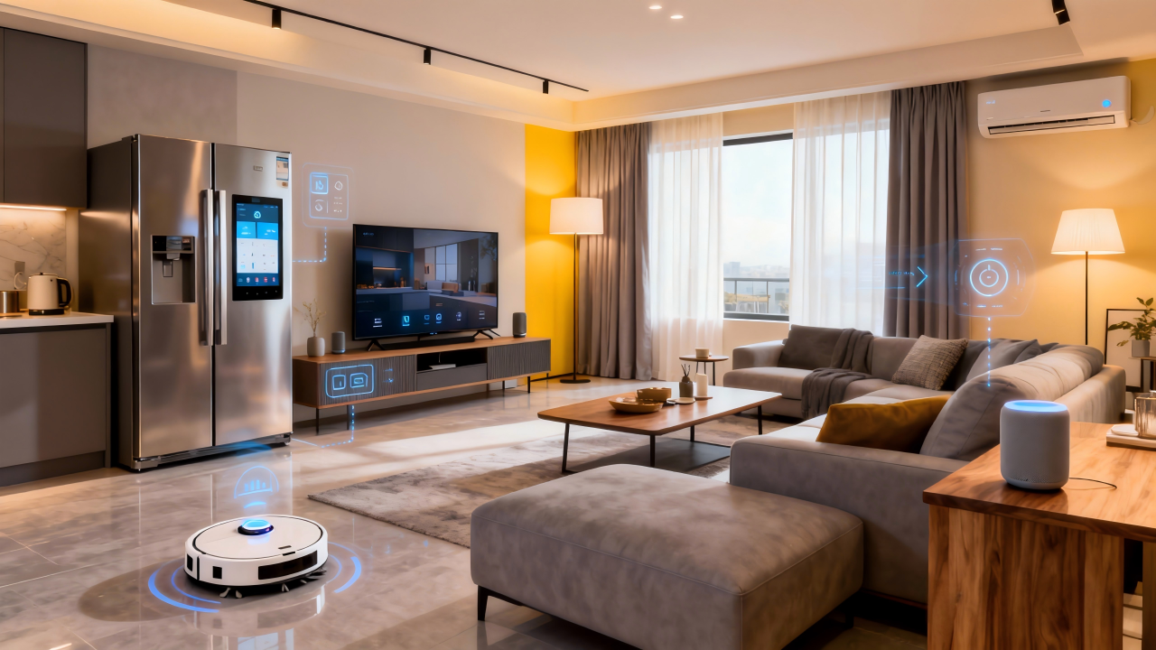 智能空调:空调系统如今可实现全屋智能温控,通过AI学习用户习惯,自动调节温度与湿度。部分高端型号还能监测空气质量,智能启动新风净化功能。